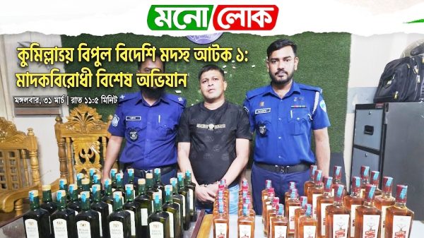 মোঃ ওয়াসিম: কুমিল্লায় মাদকবিরোধী বিশেষ অভিযানে বিপুল পরিমাণ বিদেশি মদসহ এক ব্যক্তিকে আটক করেছে পুলিশ। গত মঙ্গলবার (৩১ মার্চ) রাত ১১টা ৫ মিনিটে কুমিল্লা কোতয়ালী মডেল থানা পুলিশের উদ্যোগে এ অভিযান পরিচালিত হয়। থানার অফিসার ইনচার্জের নেতৃত্বে কোতয়ালী মডেল