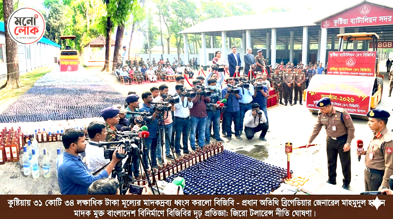 বর্ডার গার্ড বাংলাদেশ, কুষ্টিয়া ব্যাটালিয়ন (৪৭ বিজিবি) এর উদ্যোগে প্রায় ৩১ কোটি ৩৪ লক্ষাধিক টাকা মূল্যের বিপুল পরিমাণ মাদকদ্রব্য ধ্বংস করা হয়েছে।