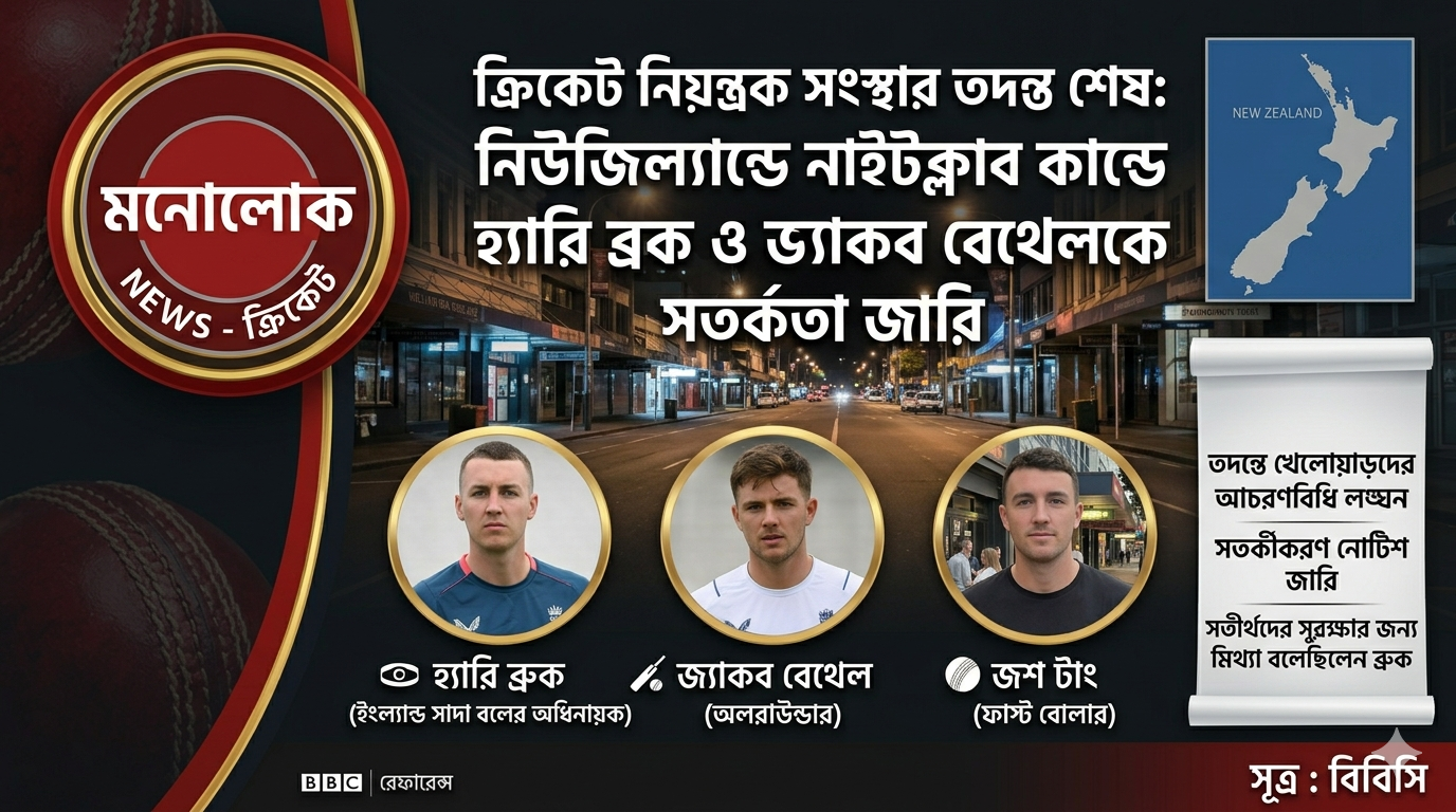 মনোলোক : ইংল্যান্ডের সাদা বলের অধিনায়ক হ্যারি ব্রুক এবং অলরাউন্ডার জ্যাকব বেথেলকে গত বছর অ্যাশেজের আগে নিউজিল্যান্ড সফরে তাদের আচরণের জন্য তিরস্কার করা হয়েছে।