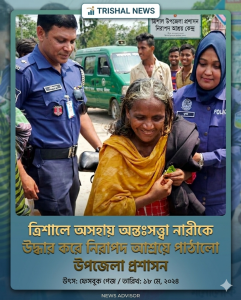 আজ মঙ্গলবার (০৭ এপ্রিল ২০২৬) উপজেলা নির্বাহী কর্মকর্তা (ইউএনও) আরাফাত সিদ্দিকীর নির্দেশে এবং উপজেলা সমাজসেবা কার্যালয় ও ত্রিশাল থানা পুলিশের সহযোগিতায় এই উদ্ধার অভিযান পরিচালিত হয়। উদ্ধারকৃত নারীকে উন্নত চিকিৎসা ও নিরাপদ আবাসের জন্য গাজীপুরের পুবাইলে অবস্থিত সরকারি আশ্রয়কেন্দ্রে পাঠানো হয়েছে।