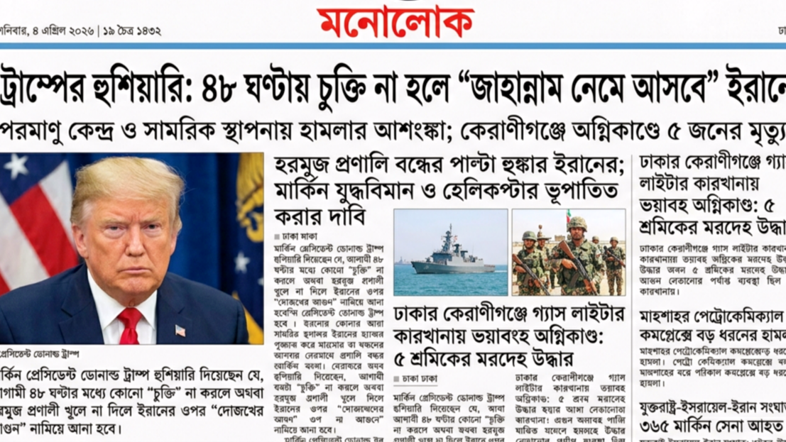 প্রিন্ট এর তারিখঃ এপ্রিল ৫, ২০২৬, ৫:২৯ এ.এম || প্রকাশের তারিখঃ এপ্রিল ৪, ২০২৬, ৬:০৪ অপরাহ্ণ