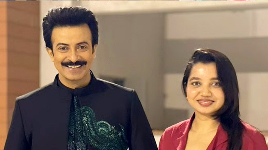 টক শোয়ের উপস্থাপকের লুকে কালো শার্টের সঙ্গে ব্রাউন স্যুট পরেছেন তিনি। হেয়ারস্টাইলটি নজরকাড়া।