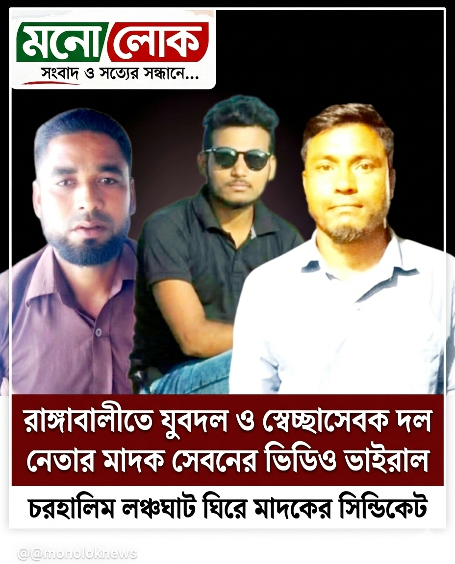 আ.রহিম গাজী,রাঙ্গাবালী(পটুয়াখালী):মনোলোক: পটুয়াখালীর রাঙ্গাবালী উপজেলার বড়বাইশদিয়া ইউনিয়নের চরহালিম লঞ্চঘাট এলাকায় মাদক সেবন ও মাদক ব্যবসাকে কেন্দ্র করে একাধিক ভিডিও সামাজিক যোগাযোগমাধ্যমে ছড়িয়ে পড়ায় এলাকায় ব্যাপক আলোড়ন সৃষ্টি হয়েছে। ভাইরাল হওয়া ভিডিওতে স্থানীয় যুবদল ও স্বেচ্ছাসেবক দলের কয়েকজন নেতাকে মাদক সেবনের সঙ্গে জড়িত থাকার অভিযোগ উঠেছে।