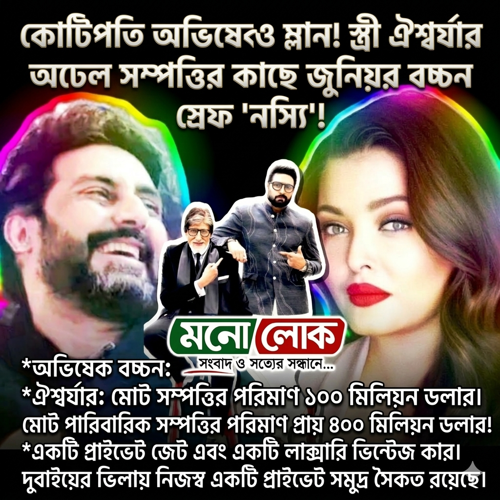 তবে, ঐশ্বর্যার মোট সম্পত্তি অভিষেকের তিন গুণ।