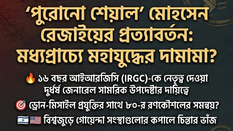 মধ্যপ্রাচ্যের আকাশে আবারও যুদ্ধের কালো মেঘ। দীর্ঘদিন পর আবার সামরিক অঙ্গনে ফিরলেন ইরানের প্রভাবশালী জেনারেল মোহসেন রেজাই—যাকে পশ্চিমা বিশ্ব “পুরোনো শেয়াল” নামে চেনে। তার এই প্রত্যাবর্তনকে ঘিরে আন্তর্জাতিক মহলে তৈরি হয়েছে নতুন করে উদ্বেগ ও জল্পনা।