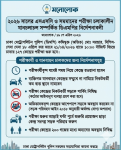 ২০২৬ সালের এসএসসি ও সমমানের পরীক্ষা চলাকালীন যানচলাচল সম্পর্কিত নির্দেশনাবলী প্রকাশ করেছে ঢাকা মেট্রোপলিটন পুলিশ (ডিএমপি)।